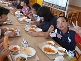 「ナン」と「キーマカレー」は、インド料理です。自転車のサドルのような形をしたインドのパン「ナン」にキーマカレーをつけて食べて下さい。小学校1~2年生と3~6年生、中学生でサイズが違います。キーマカレーには、みじん切りの玉ねぎが18Kgも使われています。調理員さんたちは、玉ねぎが目にしみるのを我慢してみじん切りにしてくれました。おいしいキーマカレーも、調理員さん達の頑張りがあってこそですね。