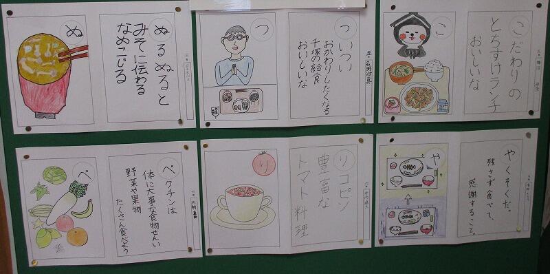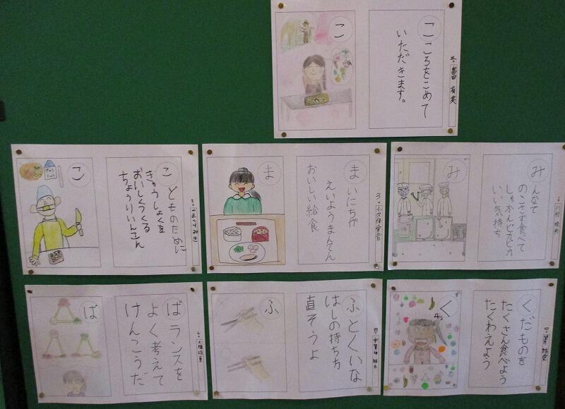 給食週間の取組として、子どもたちは毎年給食カルタを作成しています。