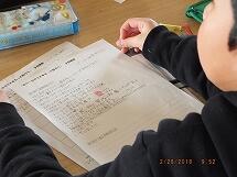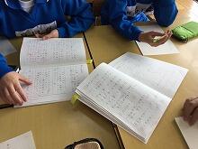 1月23日(火)、5・6年生で家庭学習ノートコンテストを行いました。審査のポイントは①ノートの使い方(無駄なく見やすく使っているか)、②内容(学年にふさわしいか、いろいろな教科の学習をしているか)、③毎日こつこつと行っているかの3点です。今回はお互いの学年のノートを見て、いいと思うノートを選びだし、各クラス上位5点を決めました