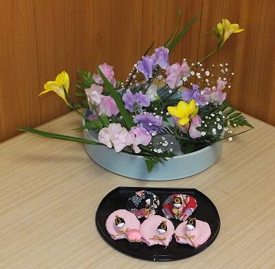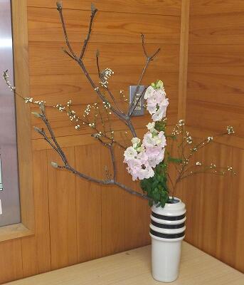 地域にお住まいの生け花の先生・山中友子 様 が、本校の玄関に花を生けてくださっています。