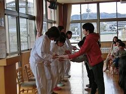卒業生を送る会を行いました。5年生が企画運営を担当。いつものワールドグループ(異年齢集団)ごとに、5年生が考えた様々なイベントを回り、ポイントを集めました。6年生に歌と花のプレゼント、6年生からは歌と学年プレートをいただきました。