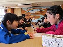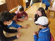 業間の時間に英語集会を行いました。ジェラ先生出身のフィリピンのお正月の遊び「ピックアップスティックス」を教えていただき、みんなでやってみました。