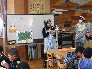 給食週間最終日の今日は、給食のメニューの「手作りアップルパイ」に関連して、「わかったさんのアップルパイ」を紹介する【おはなし給食】を実施しました