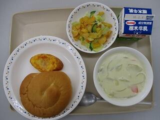 ☆フィッシュバーガー 牛乳 じゃがいものチーズ煮 白菜スープ☆