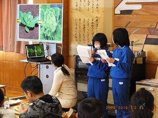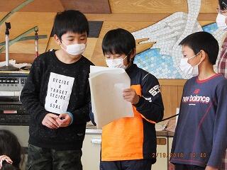 本校教育目標を達成するための今年度重点的取組に「音読や暗唱など相手に伝わるよう、人前で声を出す機会を積極的・計画的に持つ」があります。これを具現化したものの一つが、給食時のランチルーム発表です。
