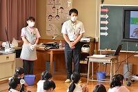 ホウキやチリトリの正しい使い方や机の拭き方、ぞうきんのしぼり方など映像や劇などを通して分かりやすく教えていただきました。