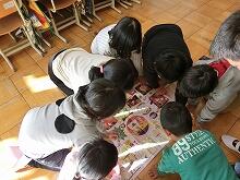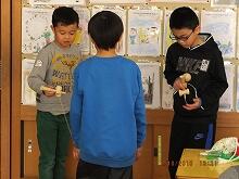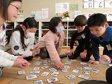 1月10日ロング昼休みに、ワールドグループ(異年齢集団)で、カルタ、だるま落とし、けん玉など、伝統的な遊びを行いました。活動の最後に、グループの人の良いところをカードに書いて気持ちを伝え合いました。