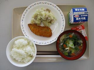 ☆ごはん 牛乳 ジャーマンポテトサラダ 白菜スープ ミルメーク☆