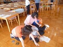 グループ毎にどう対応したらよいか話し会って、いざ実技へ