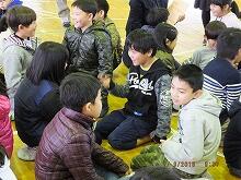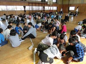 12月6日、行間の時間に朝会がありました。校長先生による朝会、ワールドグループで体育館に集合しました。ワールドグループというのは、1年生から6年生の異年齢の7~8人のグループで、四月から機会あるごとに一緒に活動しています。