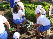 5月から2か月の間、毎日水やりや草取りなどの世話を頑張ったご褒美に、沢山の野菜を収穫し、おいしく頂くことができました。毎日世話をすることで、野菜を育てる喜びだけでなく、大変さも分かり良い体験になりました。また、沢山の野菜を収穫できたのは、子どもたちのいない土日の水やりや追肥などをしてくださった、野菜名人のおかげでもあります。夏休みも野菜は元気に育っていますので、2年生は畑の草取りと収穫に来て下さい。畑の様子と野菜の花を紹介します。