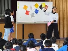 9月13日学校公開日の業間の時間に、校長先生の講話朝会がありました。日本語のおもしろさについてのお話でした。児童はもちろん、保護者や教員も話のおもしろさに引き込まれました。
