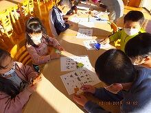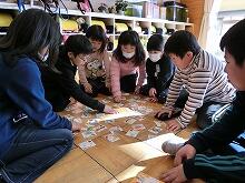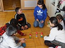 1月10日ロング昼休みに、ワールドグループ(異年齢集団)で、カルタ、だるま落とし、けん玉など、伝統的な遊びを行いました。活動の最後に、グループの人の良いところをカードに書いて気持ちを伝え合いました。