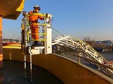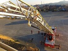 12月21日放課後、栃木市消防の最新鋭はしご車が本校に登場。3階ベランダにいる被災者の救助訓練です。最新鋭のはしご車は、はしごの先3メートルで角度がつけられるようです。