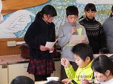 本校の目指す児童像に「人と積極的に関わり、考えを広めたり深めたりし、学び合いができる子」があります。その重点的取組としての「音読や暗唱など相手に伝わるよう、人前で声を出す機会を積極的・計画的に持つ」を具現化したものです。