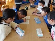 7月11日(火)の昼休みに図書室で抽選会が行われました。図書室で本を借りると押してもらえるポイントカード。その枚数分だけ“ガラガラくじ”にチャレンジできるということで、子どもたちは集めたカードを握りしめて、嬉しそうに列に並んでいました。出てきたくじの色によって、もらえる景品も様々