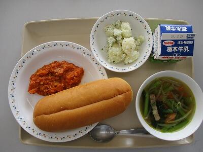 ☆ごはん 牛乳 コロッケ 野菜のカレーソテー ぎょうざスープ(皆川城東小・皆川中学校はバーガーパン)☆