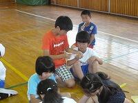6月16日(木)の全校朝会では、校長先生から『正しいお箸・鉛筆のもち方』についてお話を聞きました。その後、6年生が“ミニ先生”となり、ワールドグループ毎に練習をしたり、豆つかみなどをしたりしました。6年生は事前に校長先生から“教え方”を教わっていたこともあり、自身で手本を見せたり、下級生の手を持ってあげたりしながら、優しく教えることができました。下級生たちも楽しく活動しながら、正しいもち方を学ぶことができたようです。