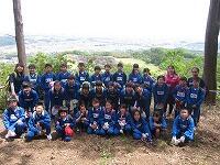 ↑ 1、2年生はここで地域の方とのふれあい会を行いました。3~6年生は1、2年生とわかれて、山頂を目指します