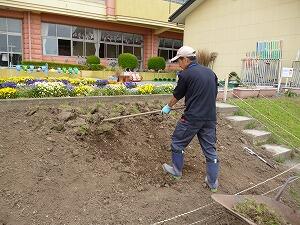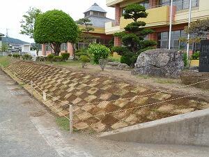 リサイクル品回収やえのき祭で得た収益金をもとに、斜面の芝を植えなおしています。