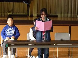そして迎えた25日。第2学期終業式です。まず、3名の代表児童が「2学期を振り返って」の作文を発表しました。
