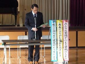 校長先生のお話です。学校教育目標から、3学期の努力点を示してくださいました。