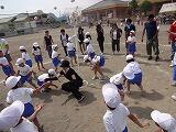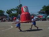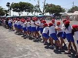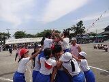 5・6年生の競技です。『レッツ ゲット バンブー』では、相手よりたくさんの棒をとれるように一生懸命棒を引っ張りました。親子競技の綱引きでは、声をそろえて力の限り引っ張りました。なかなか決着がつかず、白熱した戦いに拍手が起こりました。組体操では、豊かな千塚の地域の自然を体いっぱい表しました。最後に作った『高富士山』にみんな驚き、感動しました。
