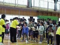 今年度ははじめに体育館で全体会が行われ、1・2年生はダンス、3・4年生は群読、5・6年生は合唱の発表をしました。また、校歌に合わせて肩たたきもしました。子どもたちも少し照れくさそうにしながらも、地域の皆さんとの交流に自然と笑顔がこぼれていました。