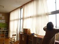 担任の先生が窓の鍵やカーテンを締め、子どもたちは机を壁の方に寄せて固め、シェルターを作りました。