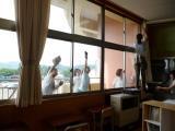 ↑ 今年はランチルームのカーテンをクリーニングに出すことになり、レールからはずしています。