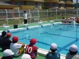 これから始まるプールでの活動に向けて、注意事項を聞いたり、「よろしくお願いします。」のあいさつをしたりしました。