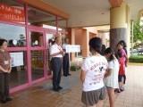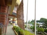 千塚小では早速1、2年生の教室前と職員室前に設置しました。一説では、ヨシズを使うことで室温が2度も下がると言われています。ボタンひとつで涼しくなるエアコンばかりに頼らず、風通しの良いヨシズを使うことで、子どもたちの省エネ意識も高めていけるとよいですね。