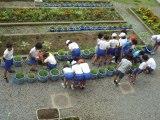 4年生では総合的な学習の時間に、身近な生き物の生態について調べています。今、絶滅が心配されているメダカを自然に近い環境で飼育しようということで、「ビオトープ」をつくっています。私たちの周りにすむ生き物にとって住みよい環境が、人間にとっても暮らしやすい環境になります。