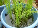 5年生は総合的な学習の時間にバケツを使って稲とメダカを育てています。
