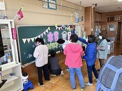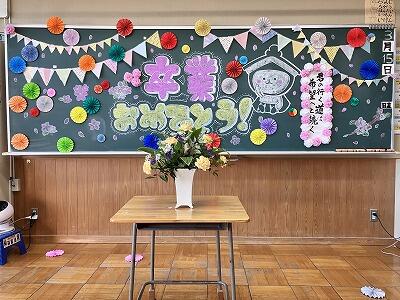 6年教室では、卒業生のために黒板アート・黒板飾りをアシストネットボランティアのみなさんが担当してくださいました。