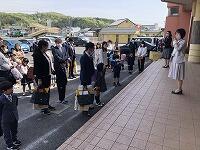 今日は入学式…15名の新入生が、保護者の皆様と登校しました。新しいランドセルを背負ってきた子もいましたよ