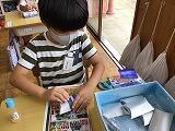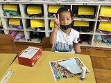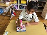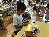 1年生は、図工の時間に「うきうきボックス」を作りました。身近にある空き箱に、飾りを工夫してつけて、電車やバッグ、水槽などの様々な作品ができました。「作るの楽しい!」「また作りたい!」とたくさん話してくれました。