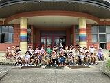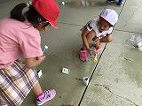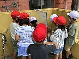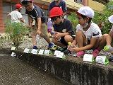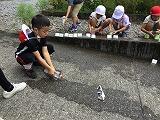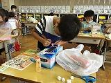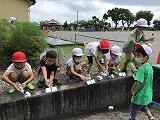 1年生は、生活科の時間に水遊びをしました。牛乳パックを利用して「的」を作り、ペットボトルキャップに穴を開けて「水鉄砲」にしました。どうやったら的が倒れるのか、友達たちと話しながら考えていました。みんな笑顔になった水遊びでした!