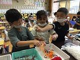1年生は、生活科の時間に生き物探しを行いました。バッタやカエルをたくさん見つけました。また、子どもたちは、虫が草むらにいることやじめじめした場所にいることに気付きました。次は、クラスのみんなで虫を飼ってみたいと思います!