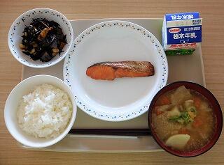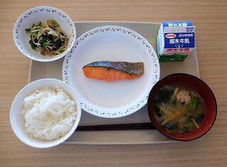 今日の給食は、ごはん、ヤシオマスの塩焼き、おひたし、みぞれ汁です。