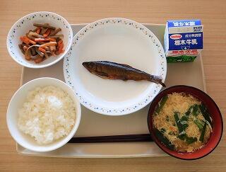 今日の給食は、給食の始まり献立です。給食の歴史と役割について詳しくはちょこっと食通信を見てください。焼き魚として、さばの塩焼きが出ています。中には大きな骨があるかもしれないので注意して食べてください。さばの旬は、秋から冬にかけてです。さばには、血液をサラサラにしてくれるEPA (エイコサペンタエン酸)や頭の働きをよくしてくれるDHA (ドコサヘキサエン酸)という体によい脂がたくさん含 まれています。この脂は、私たちの体でつくることができないため、魚などを食べて取り入れなければいけません。栄養がたくさんつまった魚を食べ、健康な体をつくりたいですね。