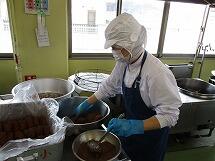 千塚小学校給食共同調理場には、8人の調理員さんがいて、交代で勤務し、子供達のすこやかな成長を願い、安心安全でおいしい給食づくりに励んでいます。