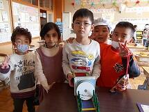 3月7日(木)の図工で「ピコリン星のゆめのステージ」を作りました。図工が大好きな2年生。いつも楽しく作っています。友達の作品を紹介すると「わあ、すごいね。いいね。」と声が聞こえます。最後にグループと全員の写真をパチリ。みんないい笑顔でした。
