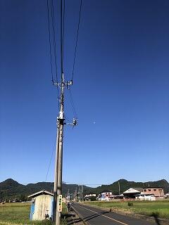 子どもたちが登校する頃、西の空を見上げると、白いお月様が見えていました