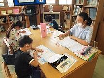 8月30日(火)…今日は夏休み中の図書室開館最終日です。「もしかすると、夏休みの宿題の駆け込みで、たくさん来室するかも~!?」という担当の先生の予想に反して、今日は1番少なく、12名の子どもたちが来てくれました