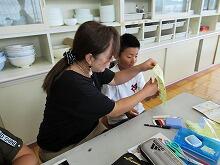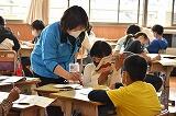 裁縫ではボランティアの皆様に御協力頂き、玉留め・玉結び・並縫いや本返し縫い・ボタン付け等を学習しました。初めての裁縫でしたがボランティアの方々が丁寧に教えてくださったので、2時間ほどでとても上手になりました。2学期にはフエルトを使った小物作りに挑戦します。