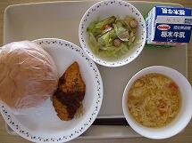 今日の給食のメニューは、「フィッシュバーガー 牛乳 キャベツのソテー トマトと卵のスープ」でした。