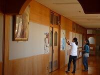 各教室、特別教室の窓ふきや掃除、校庭南側の側溝掃除、非常階段掃除、農園の除草など、