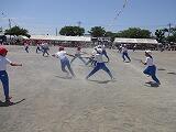 全校種目や4・5・6年生による騎馬戦です。全校種目では、布からボールを落とさないように、低学年に合わせながら走る姿が多く見られ、チームごとに協力していました。騎馬戦では、最後の大将騎馬同士の戦いが盛り上がりました。地域の方々、保護者の皆さんと踊った『太陽の子どもたち』では、みんな笑顔いっぱいでした。