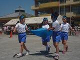 1・2年生の競技です。『だるまさん おっとっと』では、自分よりも大きなだるまを友達と協力して運びました。親子競技の玉入れでは、子どもに負けないくらい必死に玉をいれるお父さん、お母さんの姿が素敵でした。ダンスでも劇場版ドラえもんの曲『360°』をかわいく、元気いっぱい踊りました。